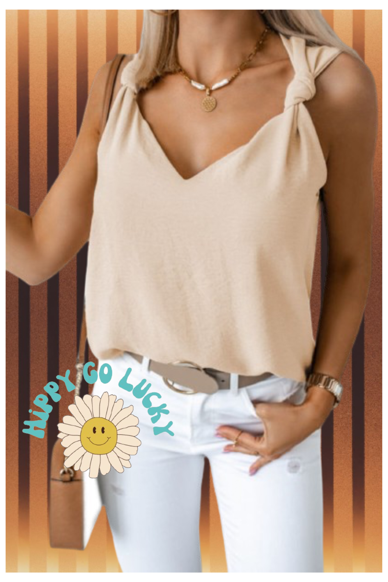 Cream color V Neck Knotted blouse